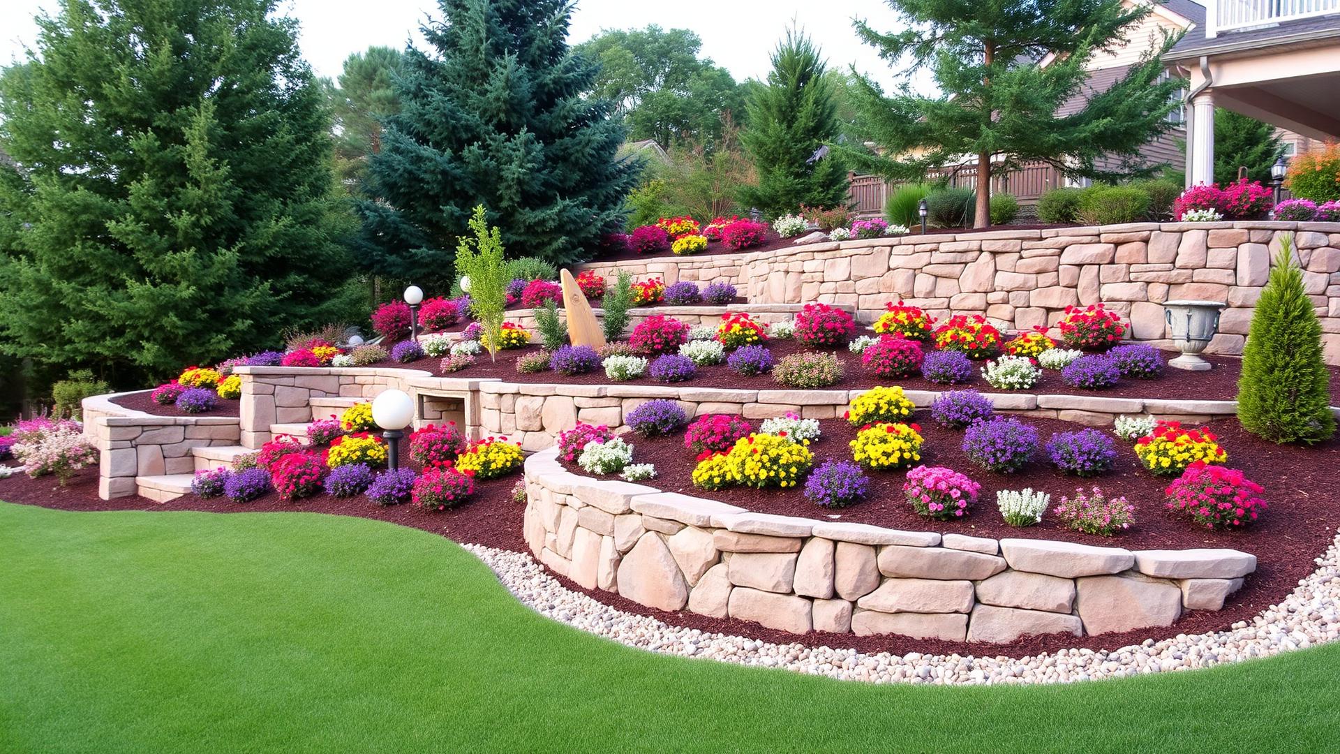 From elegant flagstone patios to engineered retaining walls, our hardscape work is built to withstand decades of weather. We source premium natural stone and pavers to create structures that are both functional and beautiful.